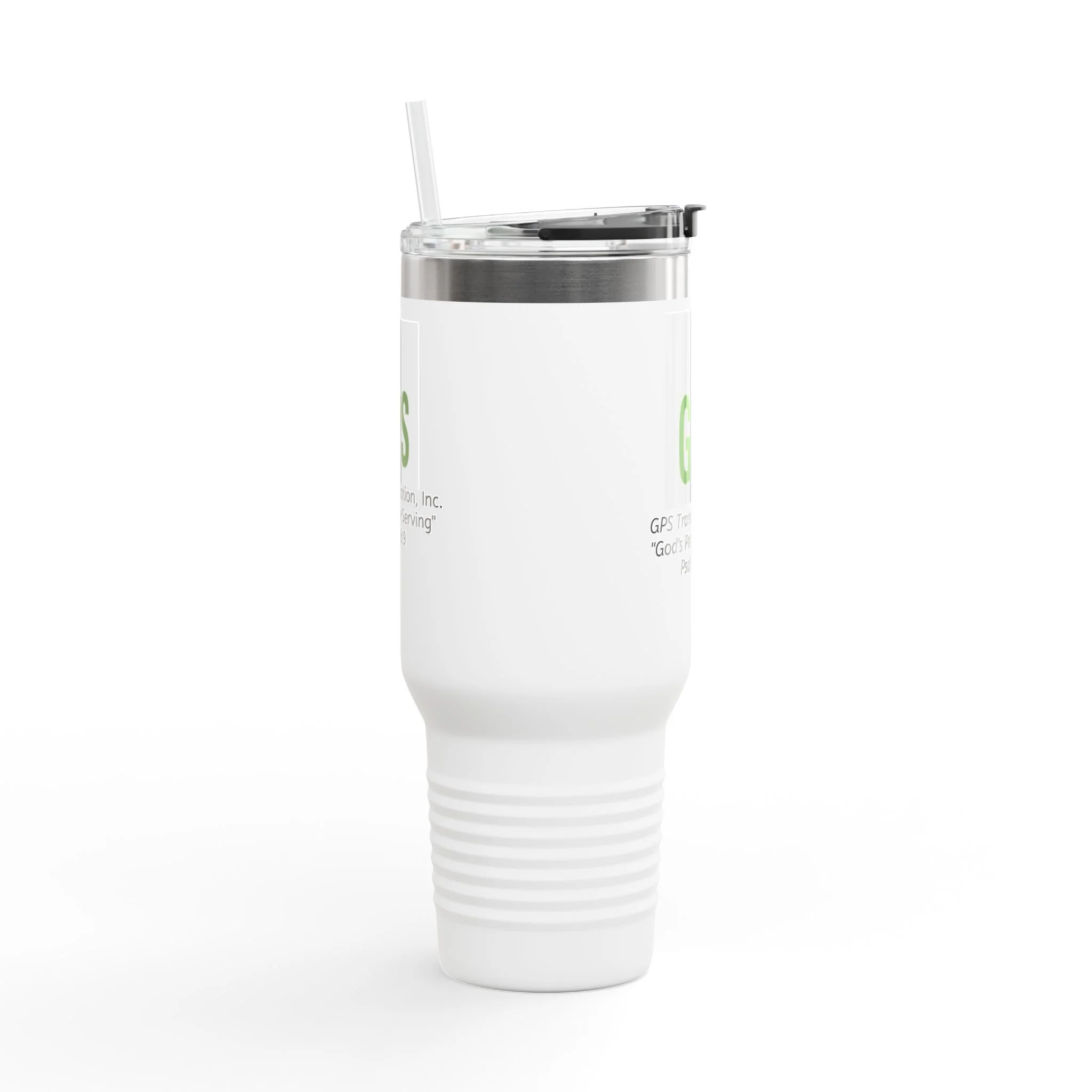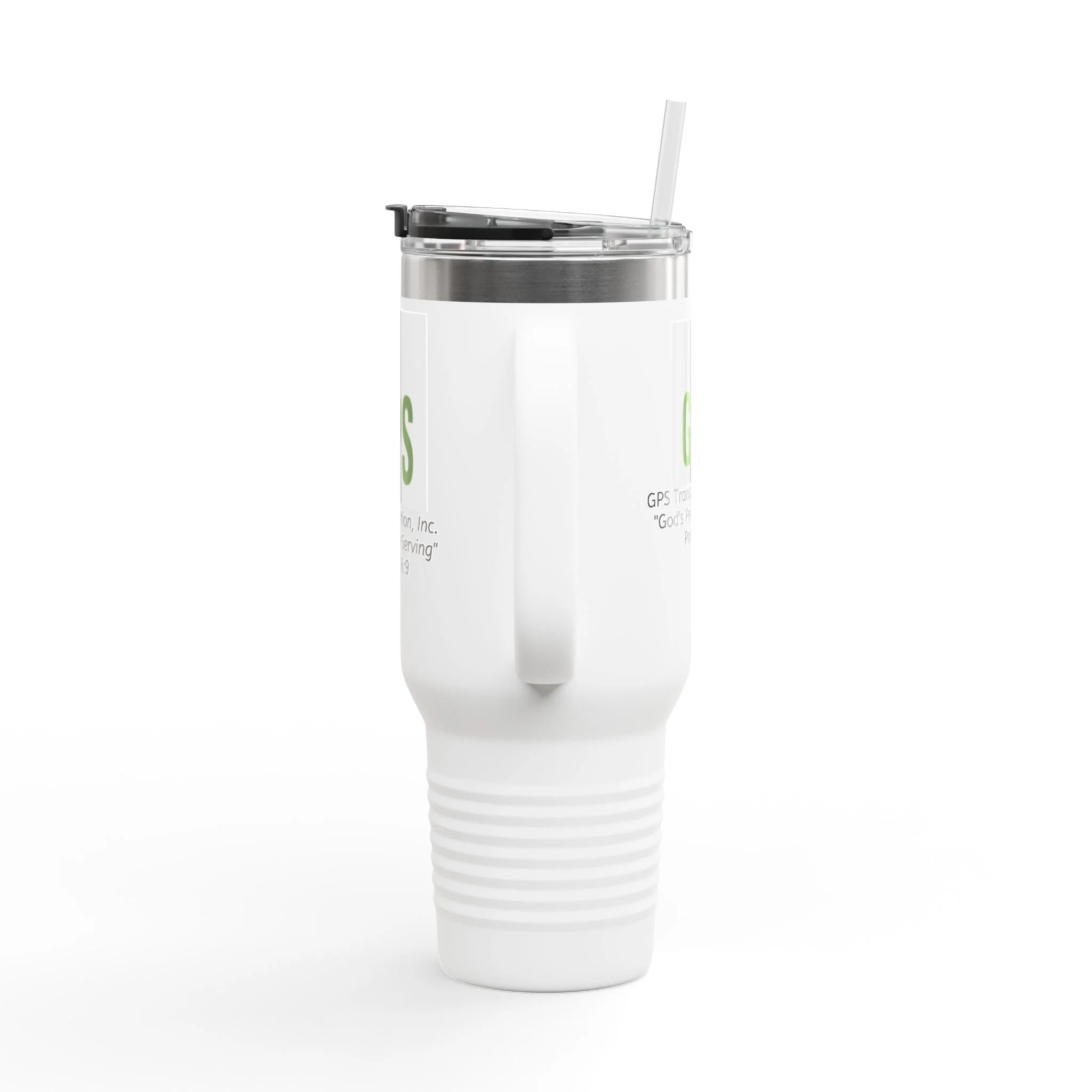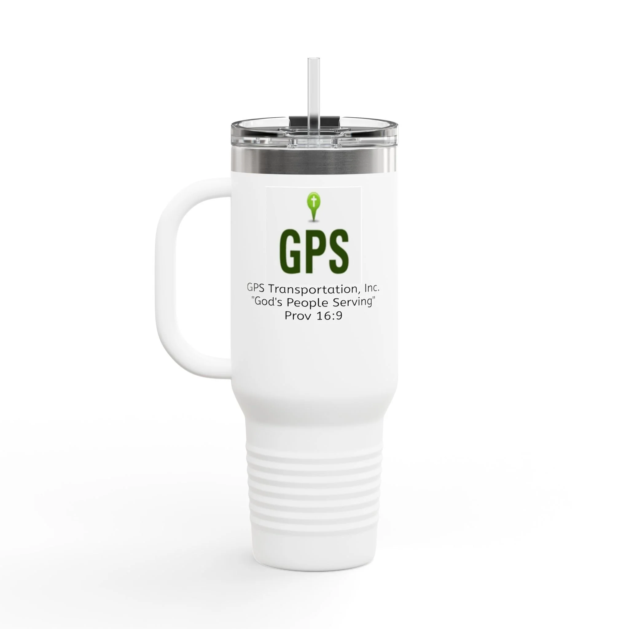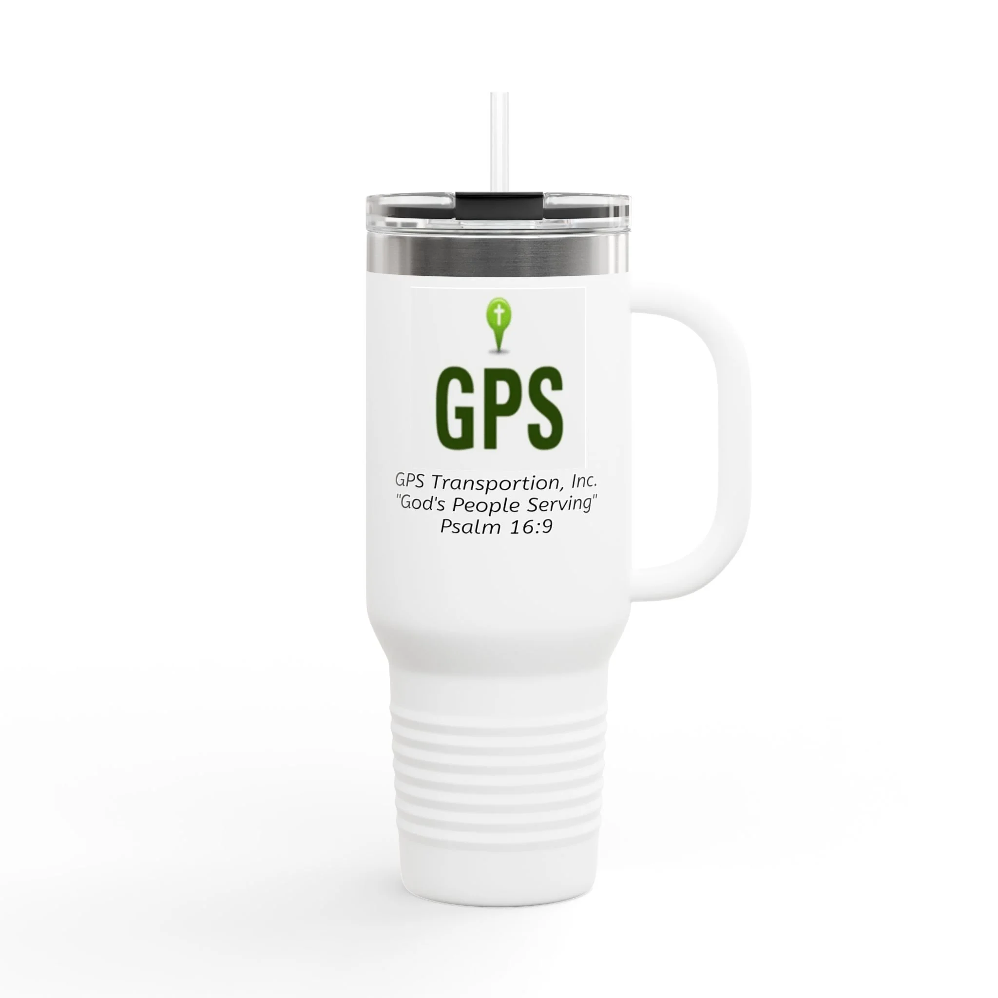 GPS Transportation 40oz Insulated Travel Mug — Stainless Tumbler with Lid & Straw, Christian Psalm 16:9 Logo